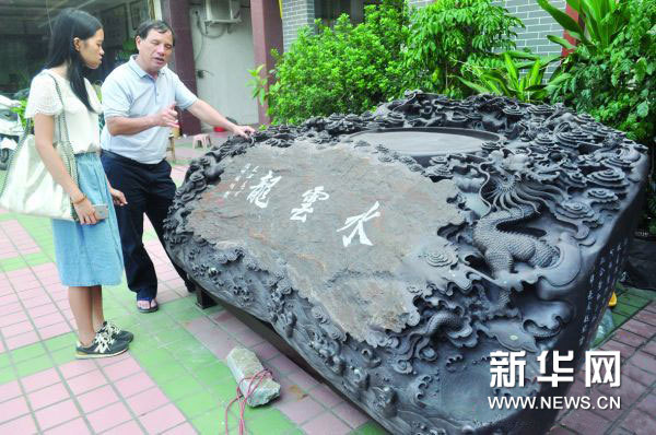 中国品牌网讯:在刚刚结束的全国文房四宝艺术博览会上,一方名为《水云龙》的巨型端砚引来观者围观和点赞。11月19日,该砚的设计、雕刻者梁焕明在接受记者采访时,吐露了创作《水云龙》巨砚的故事。
