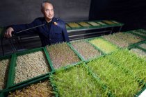 中国品牌网讯:去年11月16日,河北省香河县农民为有机无公害芽苗喷洒益生菌栽培液