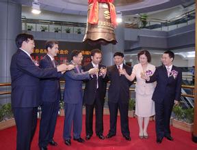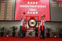 华林玻纤董事长王兆林(右一)与绩溪县人民政府副县长张明星共同敲锣(绩溪视窗综合消息):6月12日,经中国国际经济技术合作促进会中小企业服务中心、国际低碳经济研究中心辅导,由北京久秉投资管理有限···